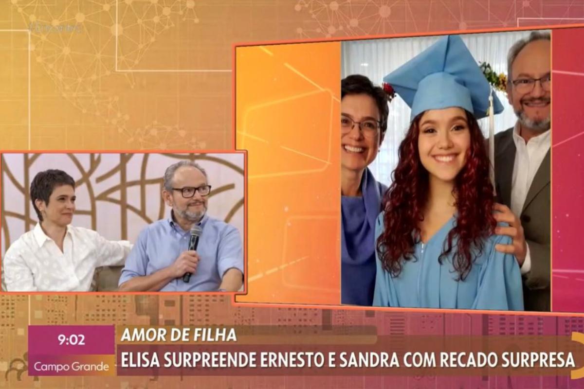Elisa emocionou os pais com uma mensagem calorosa no programa “Encontro com Patrícia Poeta”. Em comemoração aos 50 anos do “Globo Repórter”, os apresentadores receberam uma homenagem da jovem de 19 anos, que contou como realmente é conviver com os dois. Atualmente ela mora longe dos pais, pois estuda Artes Cênicas nos Estados Unidos.