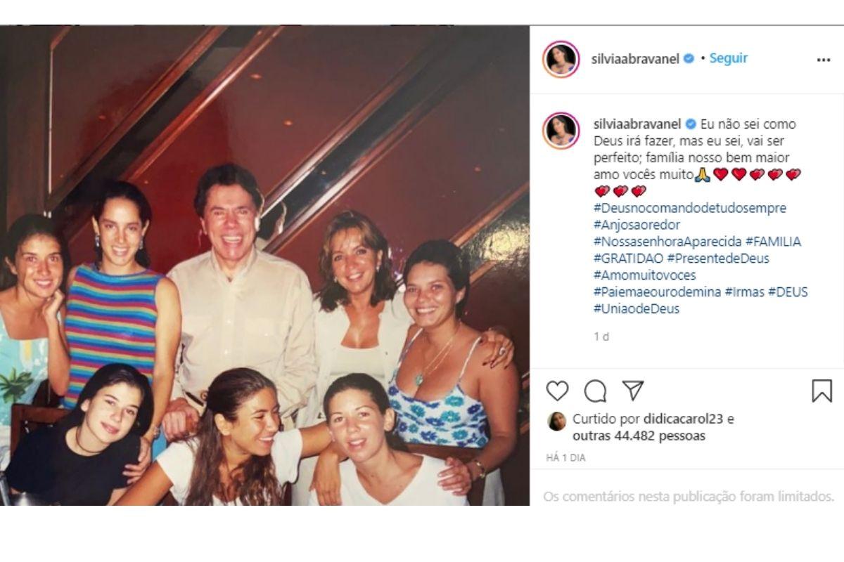 A segunda filha de Silvio Santos ainda postou uma foto antiga ao lado da família e agradeceu ao apoio neste momento. “Eu não sei como Deus irá fazer, mas eu sei, vai ser perfeito; família nosso bem maior amo vocês muito”, escreveu na legenda do post.