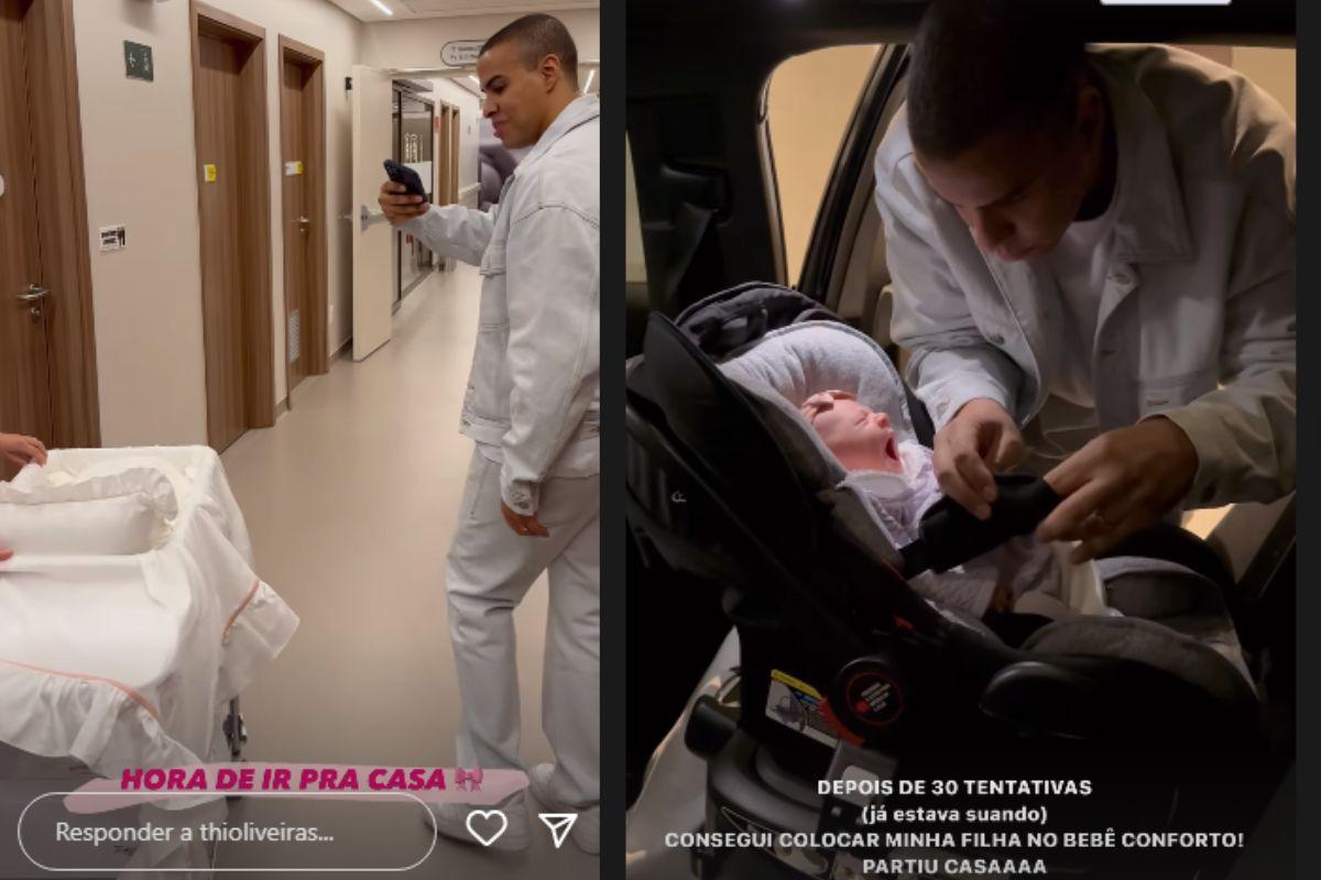 O jornalista Thiago Oliveira compartilhou com os seguidores na manhã de hoje, 25 de maio, que já está em casa com a filha nos braços. Ele é casado com Bruna Matuti que também está de alta hospitalar após dar à luz primeira filha do casal na última segunda-feira, 22 de maio.