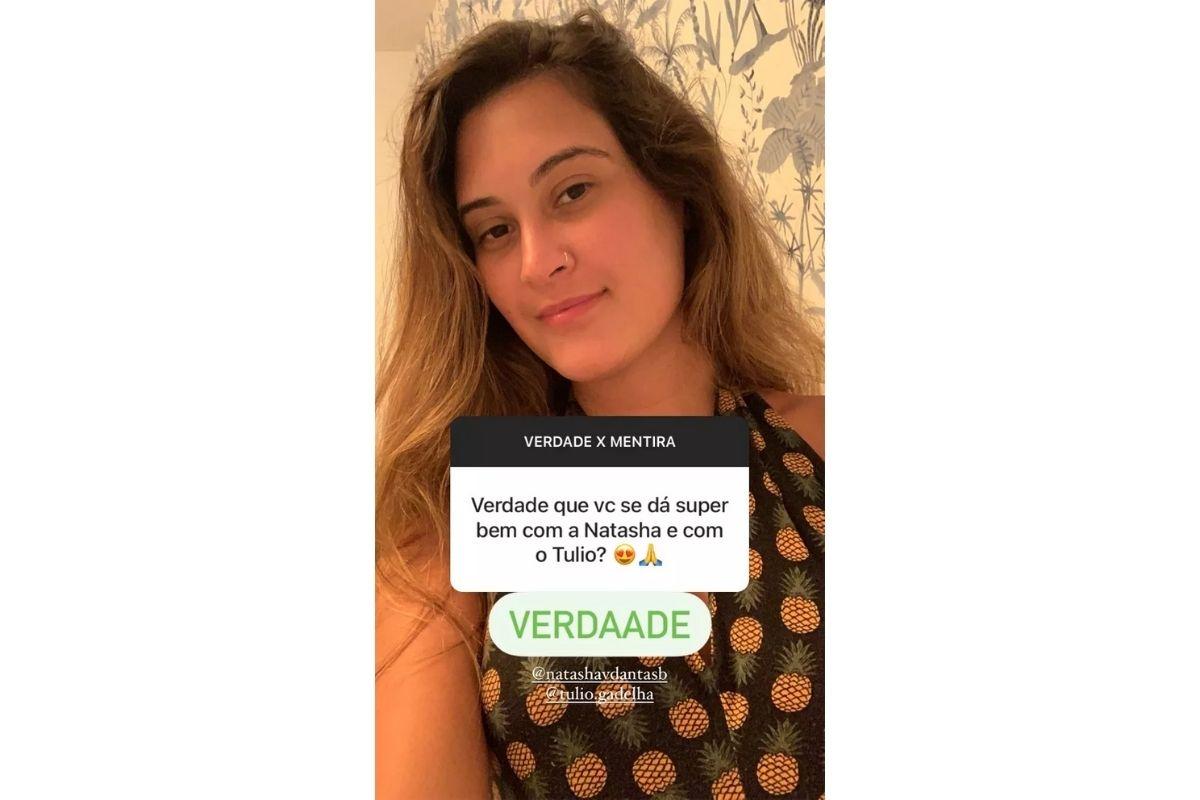 Ao ser questionada pelos seguidores ao aderir à brincadeira do “Verdade ou Mentira” no Instagram, Bia Bonemer mandou a real. “Verdade que você se dá superbem com a Natasha e o Túlio?”, oerguntou um internauta. “Verdade”, esclareceu ela.