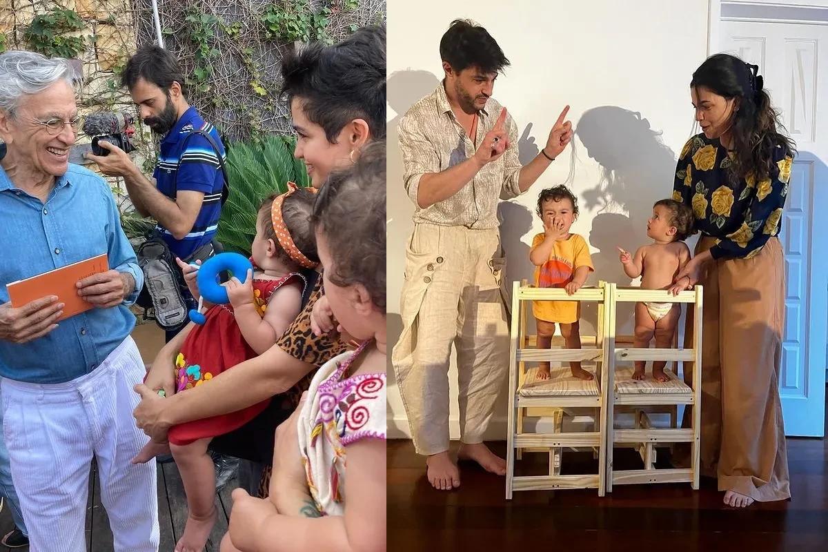 “Teatrinho da Chapeuzinho Vermelho com a vovó Célis e colinho de mivó”, escreveu ela, contando ainda que a família deu um passeio na praia e foi à casa de Paulo e Caetano. “Encontro na casa da querida Paula Lavigne, com as gêmeas tietando Caetano. Teve colinho de Arto, carinho, muito amor e esperança!”, finalizou a mãe.