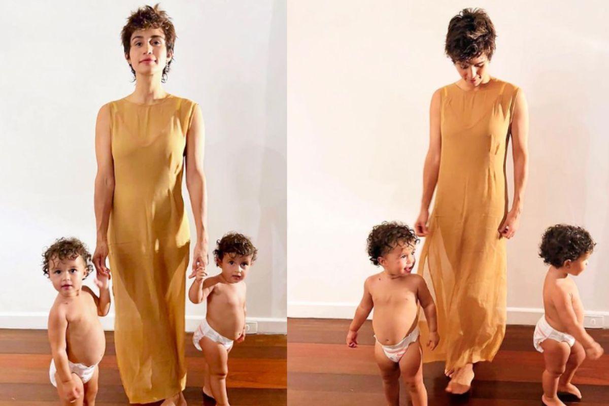 Nas imagens a atriz surge usando um vestido amarelo ao lado das filhas que estão de fraldas.‘’Registro de uma prova de roupa com minha amiga amada e talentosa’’, escreveu a mãe na legenda da publicação.