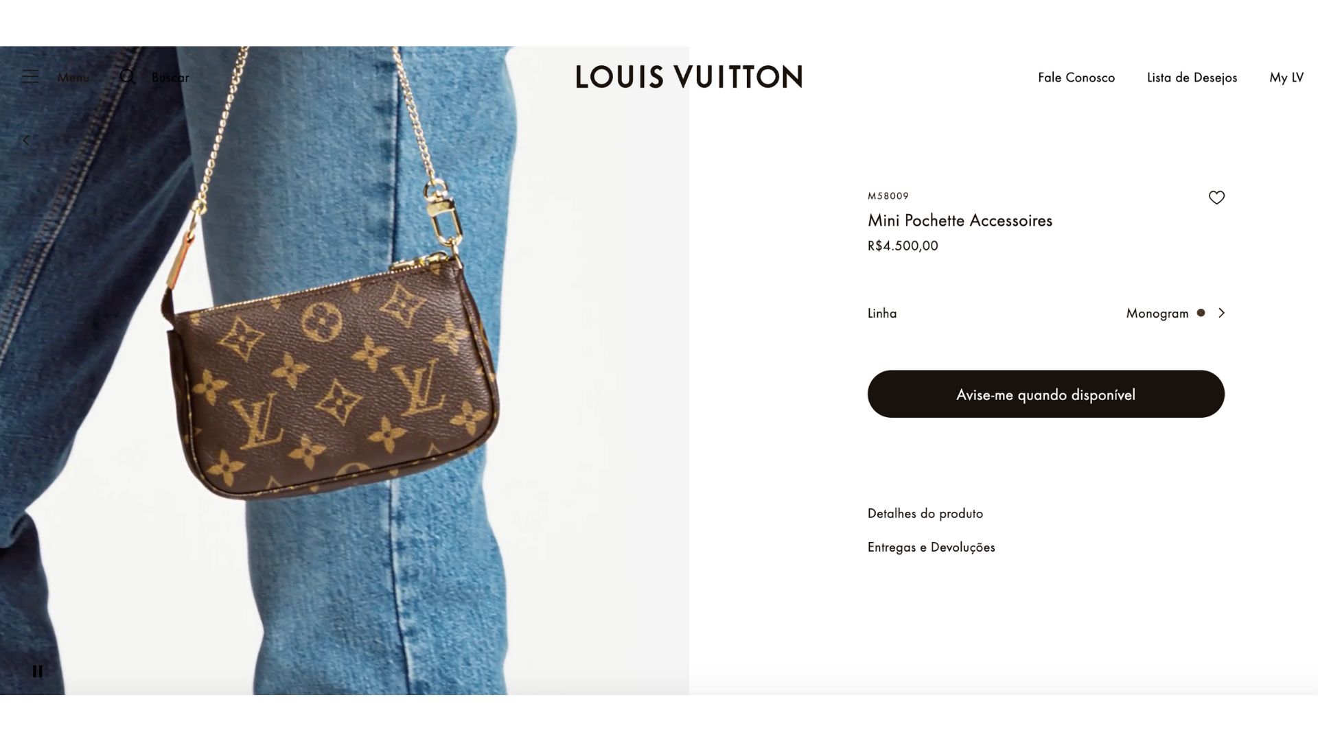 Já o modelo que Maria Alice usou pode ser encontrada no site da Louis Vuitton por 4500 reais.