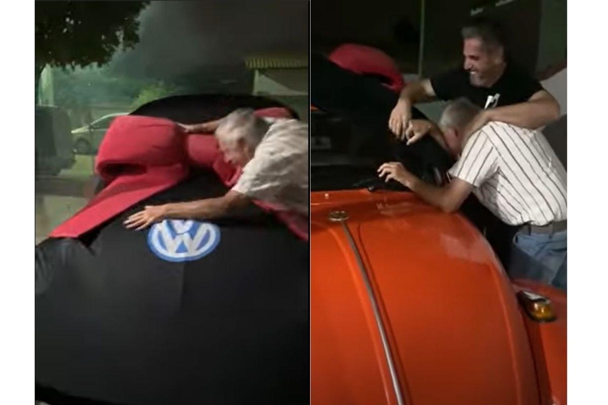 Neste domingo o filho resolveu presentear o pai após todos os anos de apoio, dando para ele um fusca vermelho, que antigamente Rogério usava muito. “Ele sempre teve um. Na época dele, a gente levava os filhos dentro do carro, no “fuca”, como falávamos, viajava com a gente, passeava pra fazer dormir. Então o sonho dele foi esse, de ter um fusca de novo.”, finalizou Fabrício.