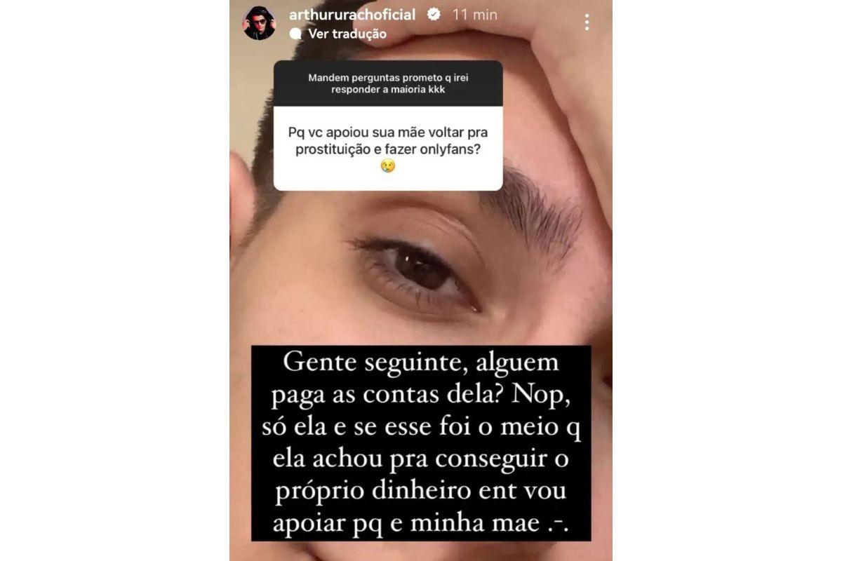 Nesta terça-feira, 7 de março, Arthur Urach, o filho mais velho de Andressa Urach, respondeu a um internauta se apoiou a mãe a fazer conteúdos adultos para uma plataforma. Ele tem 17 anos de idade e atualmente estuda música nos Estados Unidos.