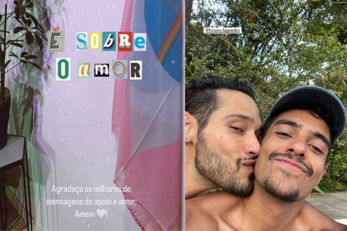 Nas redes sociais após assumirem publicamente o relacionamento, Bruno Fagundes, usou os stories do Instagram, para agradecer o carinho que tem recebido: “Agradeço as milhares de mensagens de apoio e amor. Amem”.