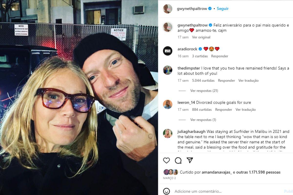 Gwyneth e Chris Martin são muitos amigos e a atriz faz questão de compartilhar sua relação com o cantor em suas redes sociais (Foto: Reprodução/ Instagram)