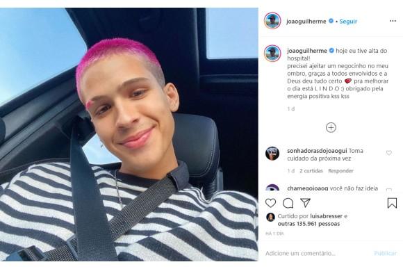 O filho do cantor Leonardo, João Guilherme, fez uma publicação neste domingo (31) no Instagram para comemorar a alta depois de uma cirurgia.
