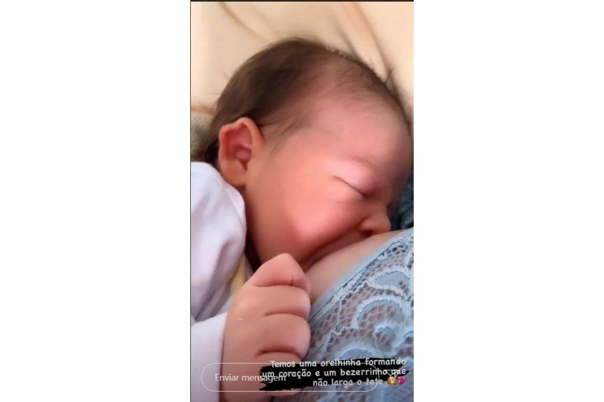 Agora, Débora mostrou uma característica muito curiosa do filho. O bebê José Walter nasceu com uma orelha em forma de coração! Débora mostrou o detalhe do filho enquanto ele mamava e disse: “Temos uma orelhinha formando um coração e um bezerrinho que não larga o tetê”.