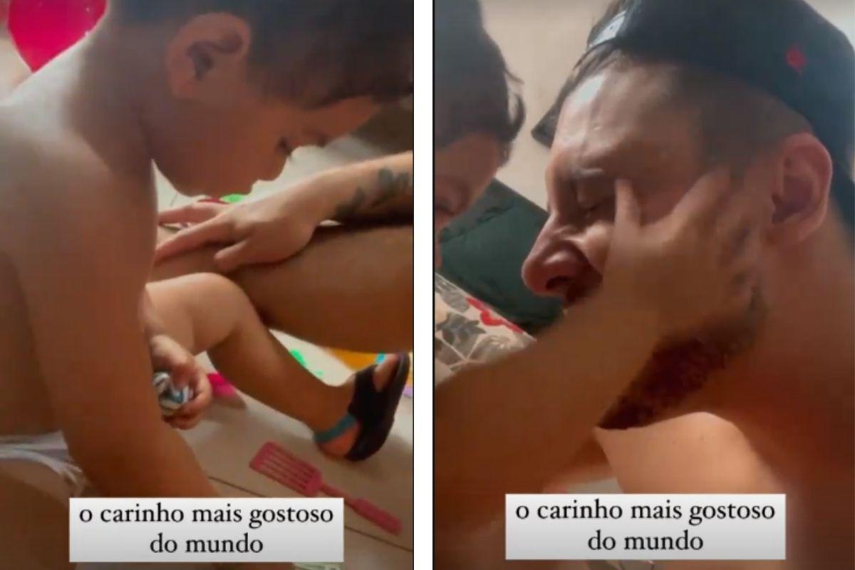 No vídeo, que foi compartilhado nos stories do Instagram, o menino, que tem menos de 2 anos, aparece acariciando o rosto do pai. “O carinho mais gostoso do mundo”, escreveu Murilo ao compartilhar o vídeo.