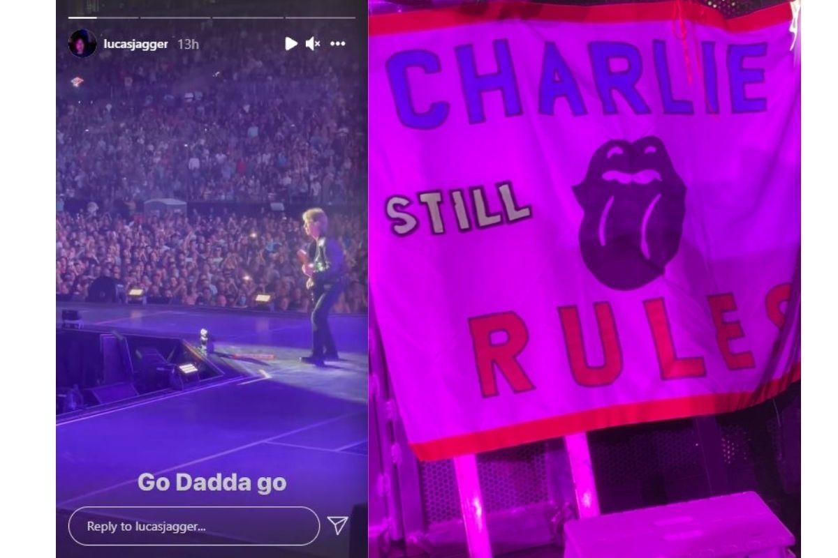 Lucas postou uma série de vídeos onde mostra o pai cantando no palco, e um cartaz escrito ‘Charlie ainda arrasa’ em homenagem ao falecido vocalista da banda Charlie Watts, que morreu em Agosto após lutar contra o câncer.