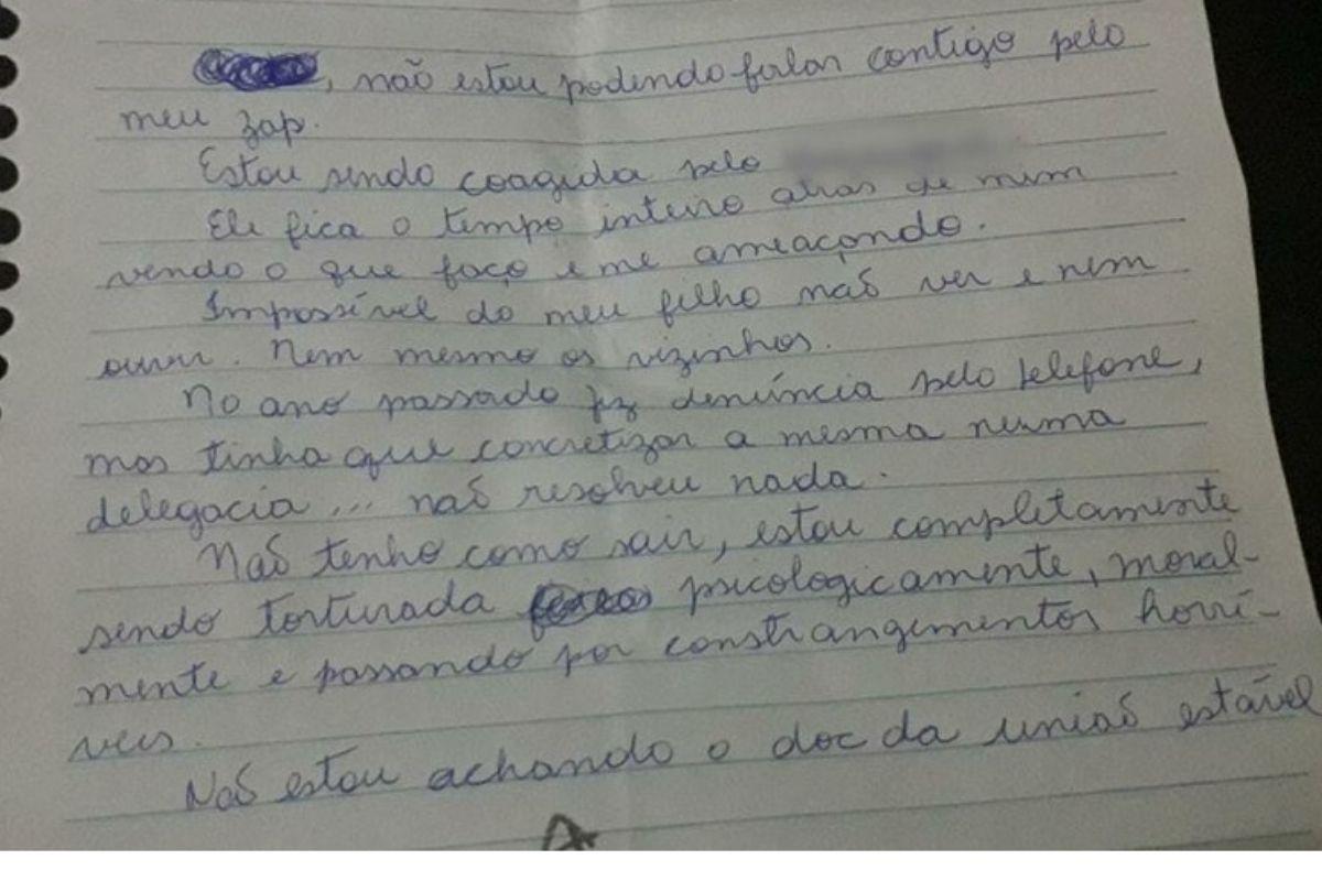 A delegada Mônica Areal contou ao G1 que, no bilhete, a vítima dizia estar sofrendo agressões físicas e violência psicológica durante oito anos. A rotina de tortura impressionou até a própria delegada responsável pelo caso. “Ele fica o tempo todo atrás de mim, vendo o que faço e me ameaçando”, diz uma parte da carta divulgada.