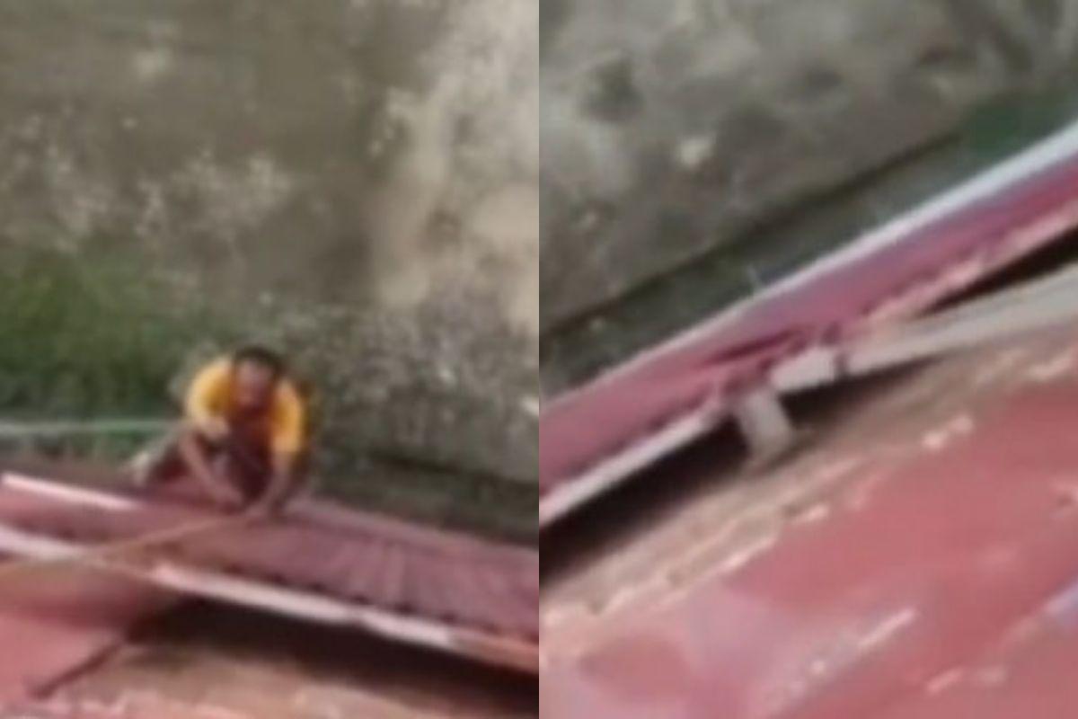 Nas imagens, a vítima aparece realizando o serviço sem nenhum aparelho de segurança. Apenas uma corda o sustenta, enquanto um pedaço de madeira é utilizado como uma espécie de assento. O filho brinca com a situação: “Olha lá, meu coroa, meu coroa está sentado aqui. Para tirar essas telhas, tudinho aqui para depois a gente pintar. Olha lá onde o velho está, o velho é doido, sem cinto, só com a tábua amarrada na corda”, disse Generson Luiz Lima da Silva, de 29 anos, que também trabalhava no local.