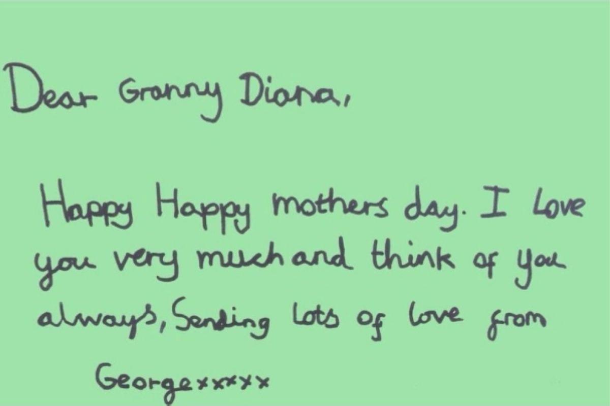 “Mandando um monte de amor, George”, concluiu o menino. Enquanto isso, Charlotte, de 5 anos, escreveu mensagem em um cartão rosa com um coração colorido desenhado. “Querida vovó Diana. Estou pensando em você no Dia das Mães. Eu te amo muito. O papai sente a sua falta. Com muito amor, Charlotte”, dizia o texto da pequena.