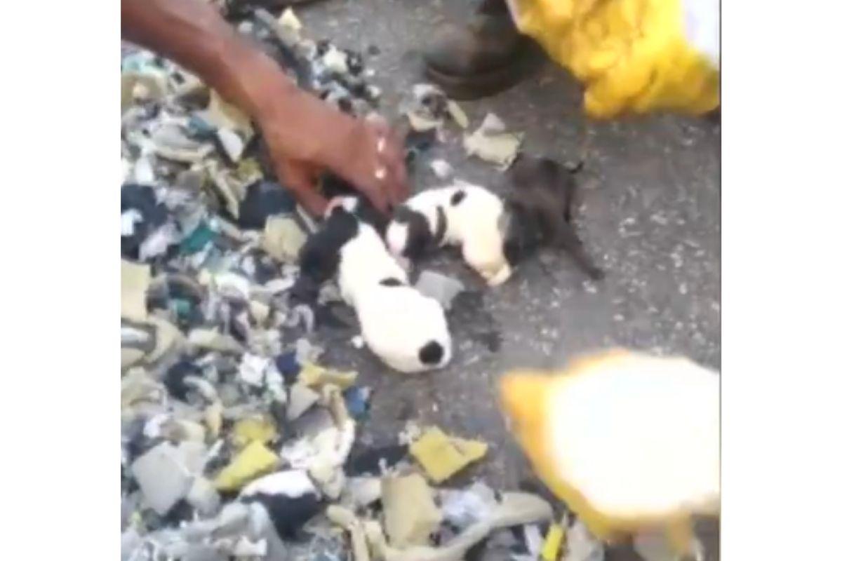 A vida de quatro filhotes de cachorro foi salva graças a coletores de lixo que trabalhavam nas ruas de São Vicente, litoral de São Paulo. Os profissionais perceberam algo se mexendo dentro de um travesseiro abandonado no lixo e decidiram abri-lo para ver o que era. Neste momento, os animais foram encontrados.