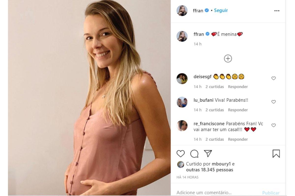 Ao anunciar a segunda gestação, Francieli falou como se sente mais preparada. “Depois de chegar na 12ª semana e sair do período mais delicado, consegui acalmar e entender que meu corpo é muito sábio e muito poderoso. E que eu precisava confiar nele. Mudei a cabeça e toda vez que sentia algo diferente pensava ‘tenho certeza que está tudo bem’ e aos poucos fui realmente me sentindo mais segura e tranquila. Mente e corpo conectados. E é isso aí, vai dar tudo certo! E vai ser diferente!”, escreveu num trecho.