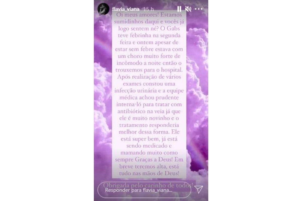 Ela falou sobre o estado de saúde do bebê (Foto: Reprodução/ Instagram @flavia_viana)