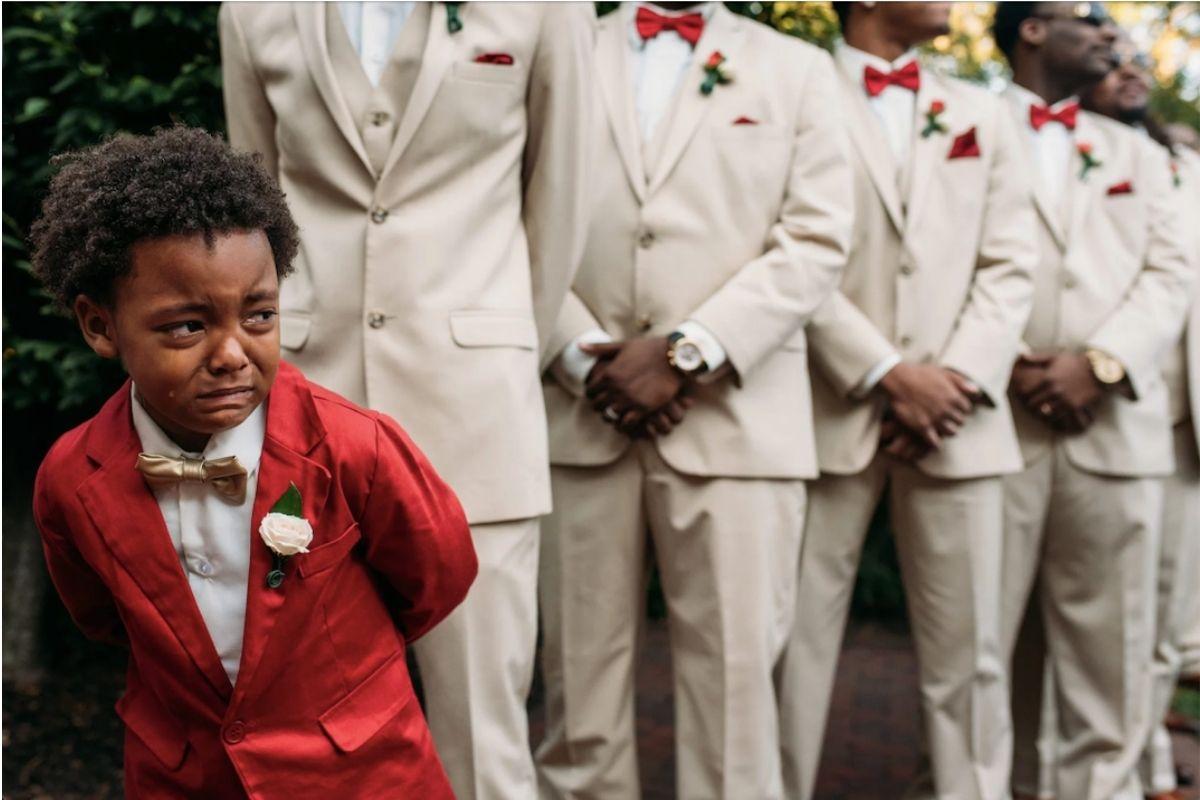 Em um casamento não tem muitas fotos tão emocionantes quanto quando o noivo vê a noiva a caminho do altar. No entanto, um fotógrafo conseguiu captar um momento mais emocionante ainda, o olhar na face de um menino de 6 anos ao ver a mãe vestida de noiva indo em direção ao futuro marido.