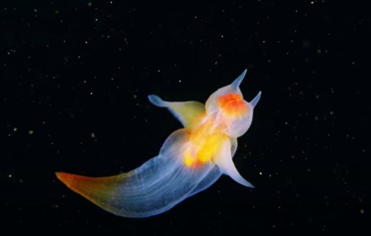 De acordo com biólogo, anjos-do-mar são da família dos moluscos pterópodes e ficam em água fria. “Em algum momento, eles aparecem repentinamente sob uma calota de gelo que cobre o mar, e em poucas semanas há tantos que em um metro cúbico de coluna de água pode haver até 500 anjos-do-mar! Com seu tamanho de 3 a 5 cm, é uma visão espetacular”, disse.