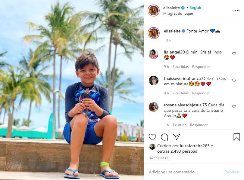Em um vídeo também publicado por Elisa, os seguidores se impressionaram com a semelhança do menino também com o jeito do cantor. “O jeitinho dele é o do pai”, escreveu uma seguidora. “Até o jeito de mandar beijinhos e igual ao do pai”, comentou outra.
