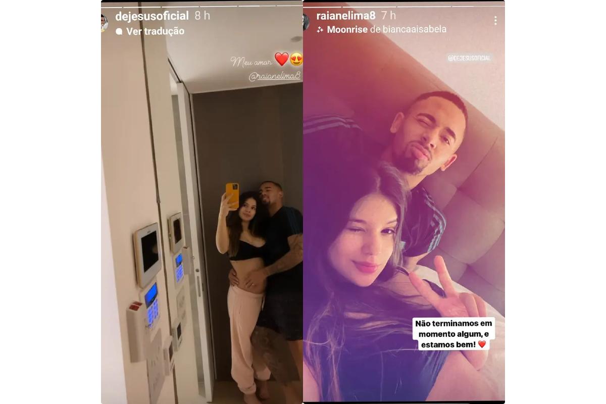 Após os rumores, o jogador acalmou os fãs ao publicar um vídeo nos Stories ao lado da namorada, com o texto “Meu amor”. Raiane também fez questão de aparecer nos stories e avisou: “Não terminamos em momento nenhum e estamos bem”. O post, compartilhado também por Gabriel, mostra o casal juntos deitados em uma cama.