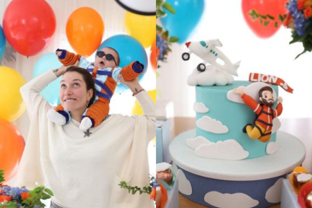 Em comemoração aos cinco meses de vida do filho, Gabriela fez o primeiro salto de paraquedas ao lado do pai do bebê. Para comemorar o mesversário de Lion e também registrar a aventura radical que fez, ela juntou os dois e criou o tema do mês.