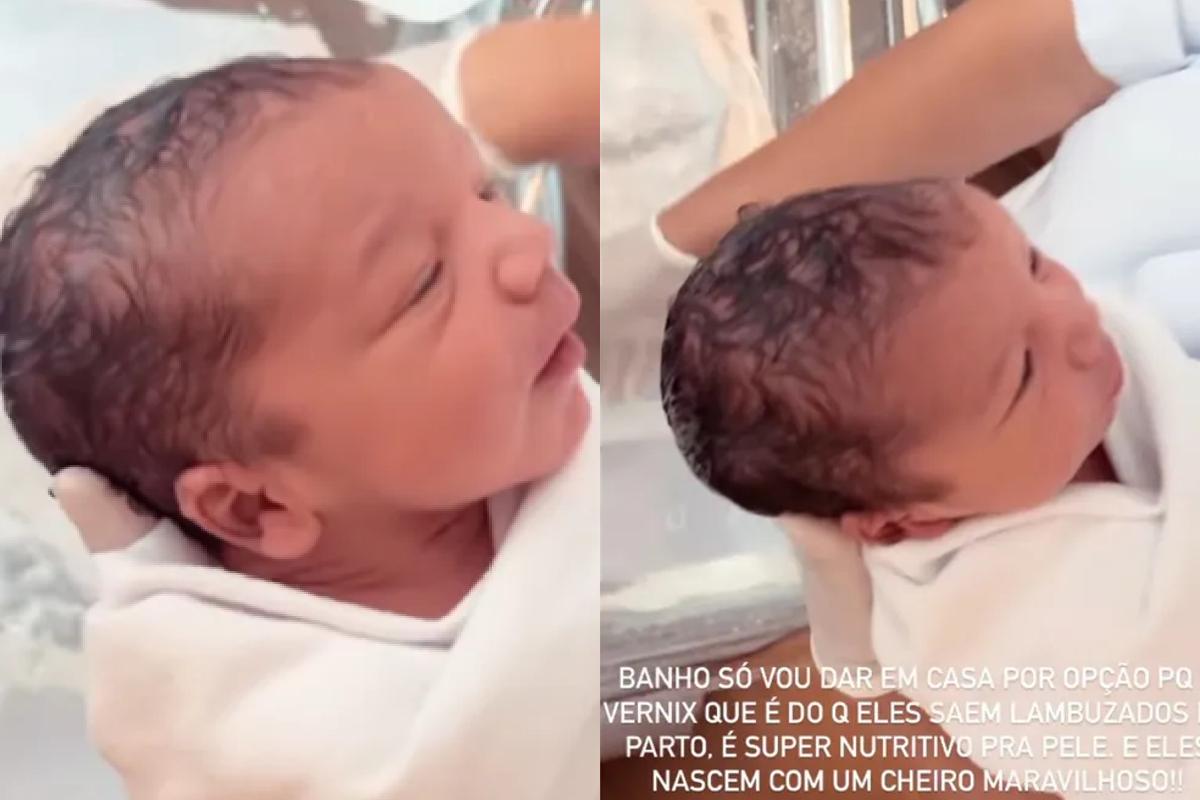Além da imagem publicada na rede social Instagram, a influenciadora digital utilizou a sessão de stories da plataforma para explicar o motivo de não ter dado banho no filho no primeiro dia de vida.