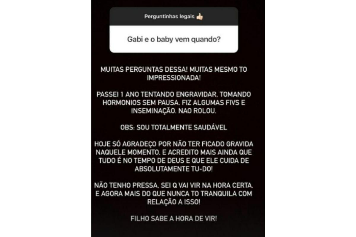 Gabriela Pugliesi responde fã sobre procedimentos que fez para engravidar: “Um ano tentando”(Foto: Reprodução/Instagram)