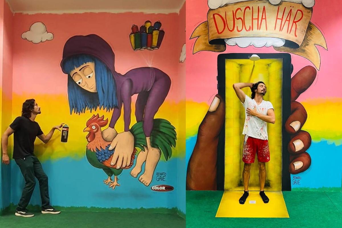 E só pelo fato de ter esse espaço em um shopping é um “choque” para Renato, já que a pessoa não comprou ingresso e não imagina que irá encontrar algo assim. “Ela é muito colorida e destoa. Desperta essa curiosidade. O sentimento ali é de alegria”, afirma. E ele contou um episódio que passou que prova isso. “Uma menina disse uma vez: ‘Eu estava na bad, porque aconteceu algo com minha família e decidi dar uma volta no shopping pra sair de casa. Vi sua galeria e veio uma alegria, fiquei apreciando’. Isso já valeu todo o trabalho que tive”.