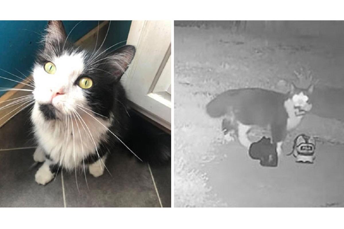 Flagrado! O gato foi pego não apenas pela câmera de segurança de seu dono, mas também dos vizinhos (Foto: Reprodução / Bored Panda)
