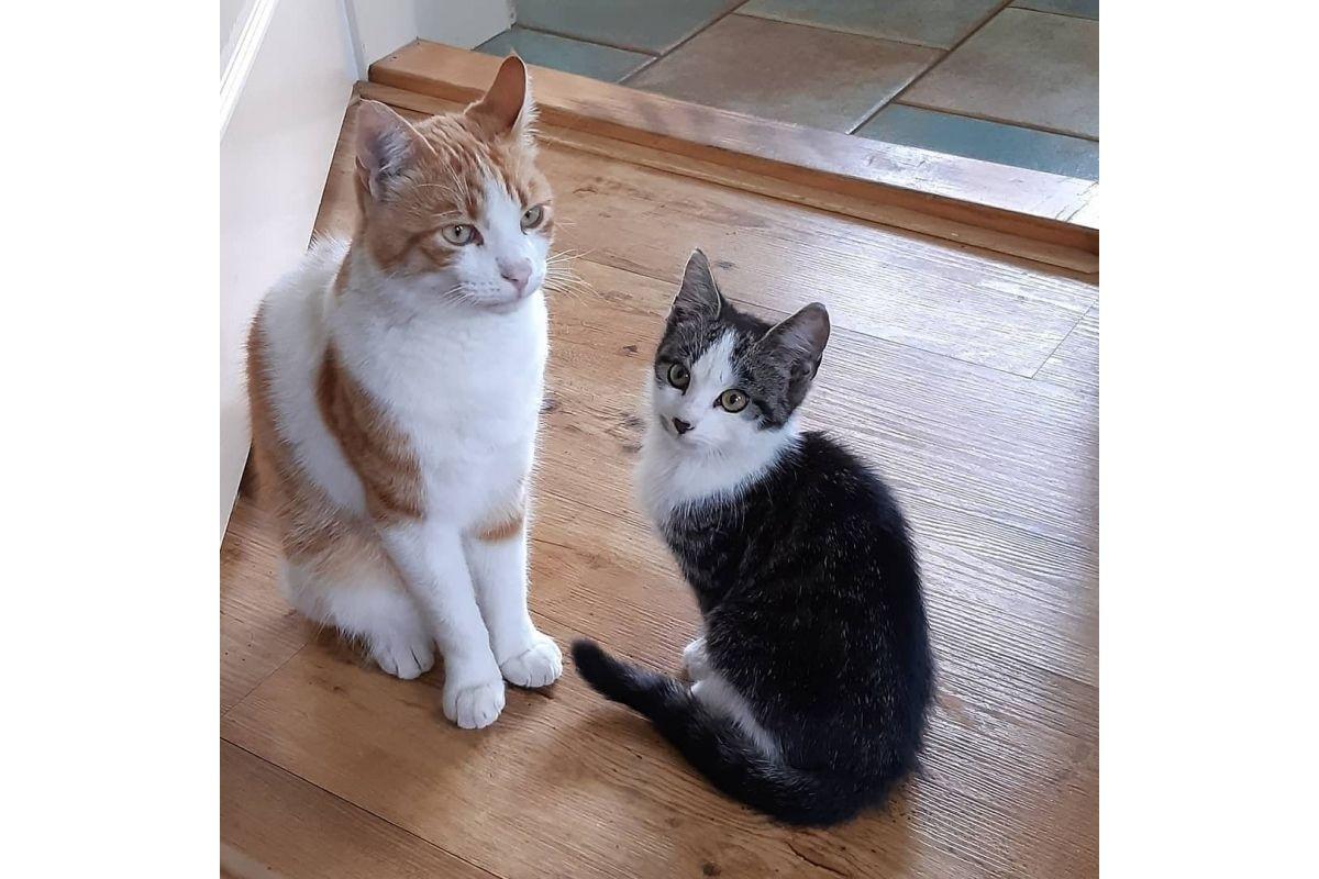 Um dia, depois da dar o jantar para os gatos, Klarieke viu o filhote comendo na tigela de Stavros, que não ficou incomodado em dividir a comida. “Eu dei ao gatinho sua própria tigela de comida no galpão, mas ele fugiu quando me viu. Aparentemente, ele estava com tanta fome que arriscou entrar para comer”.