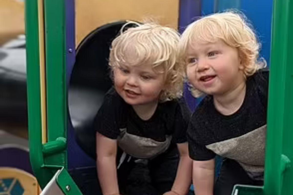 As filmagens mostram os dois, ambos com quase dois anos de idade, dando um abraço amoroso e um beijo antes de Arlo pular de empolgação e jogar um brinquedo macio para o irmão. Mãe de três filhos, Rebecca, 29, disse ao Daily Mail: ‘Theo havia descoberto muito recentemente como sair de seu berço”.