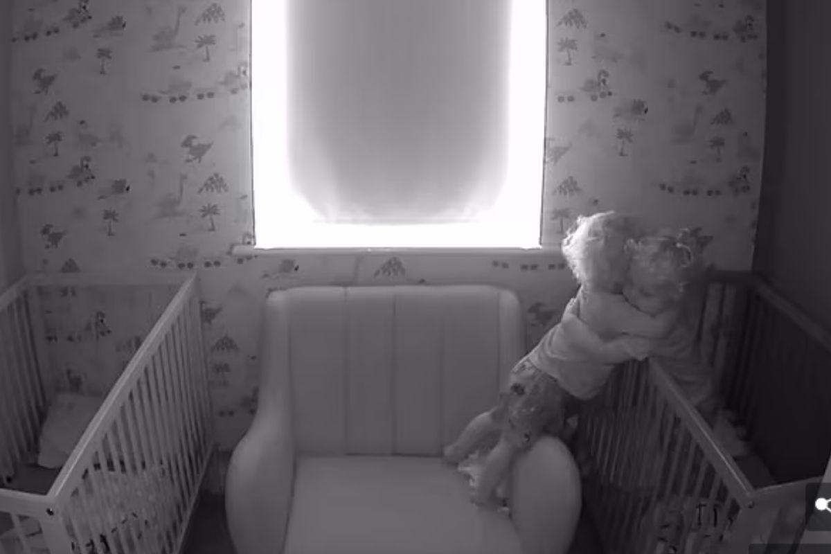 Rebecca Woodward e seu marido Michael, estavam observando a babá eletrônica quando viram seu filho Theo escalar as barras de seu berço e ir até seu irmão gêmeo não idêntico, Arlo. O casal ficou surpreso ao ver o abraço matinal e compartilharam o momento nas redes sociais.