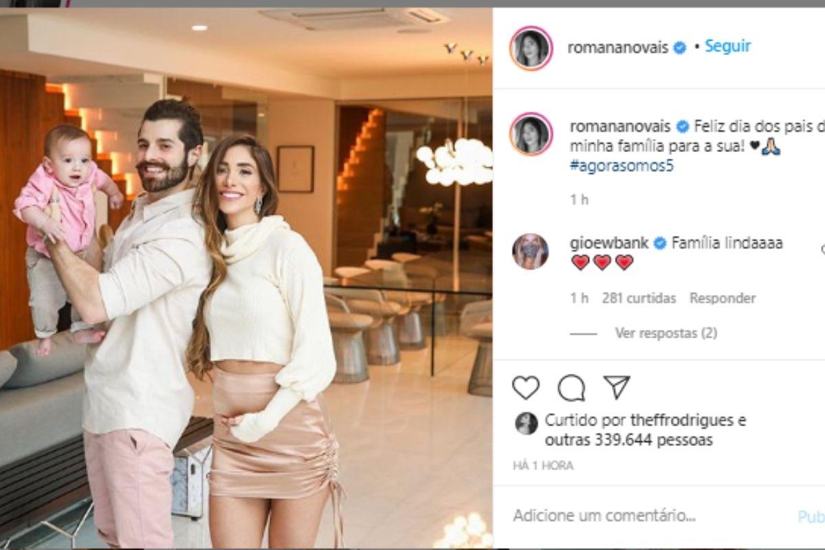 “Feliz dias dos pais, da minha família para a sua! Agora somos 5”, escreveu Romana, na legenda da publicação. A frase que deixou muitos fãs confusos, causou grande emoção para aqueles que desconfiam que ela está esperando por gêmeos.