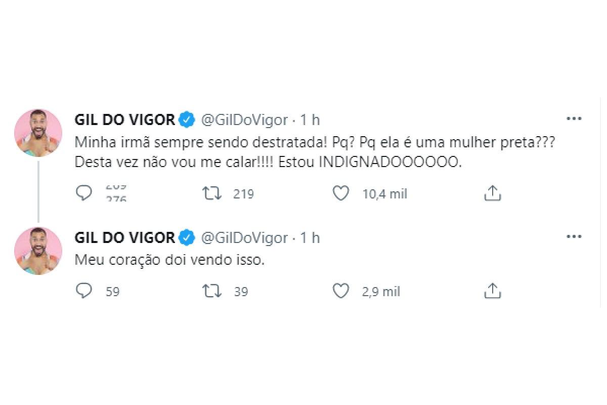 Gil do Vigor, que ficou conhecido pela participação na última edição do Big Brother Brasil usou as redes sociais na manhã desta sexta-feira (02) para mostrar um momento de indignação. Ele fez duas publicações no Twitter.