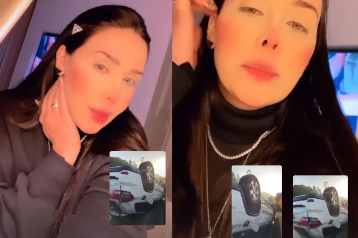 “Hoje eu saí de manhã para cumprir uma agenda de compromissos do meu marido em Cuiabá. Nesse caminho, nosso carro capotou três vezes. Essa aqui sou eu inteira depois de um carro capotado”, contou.