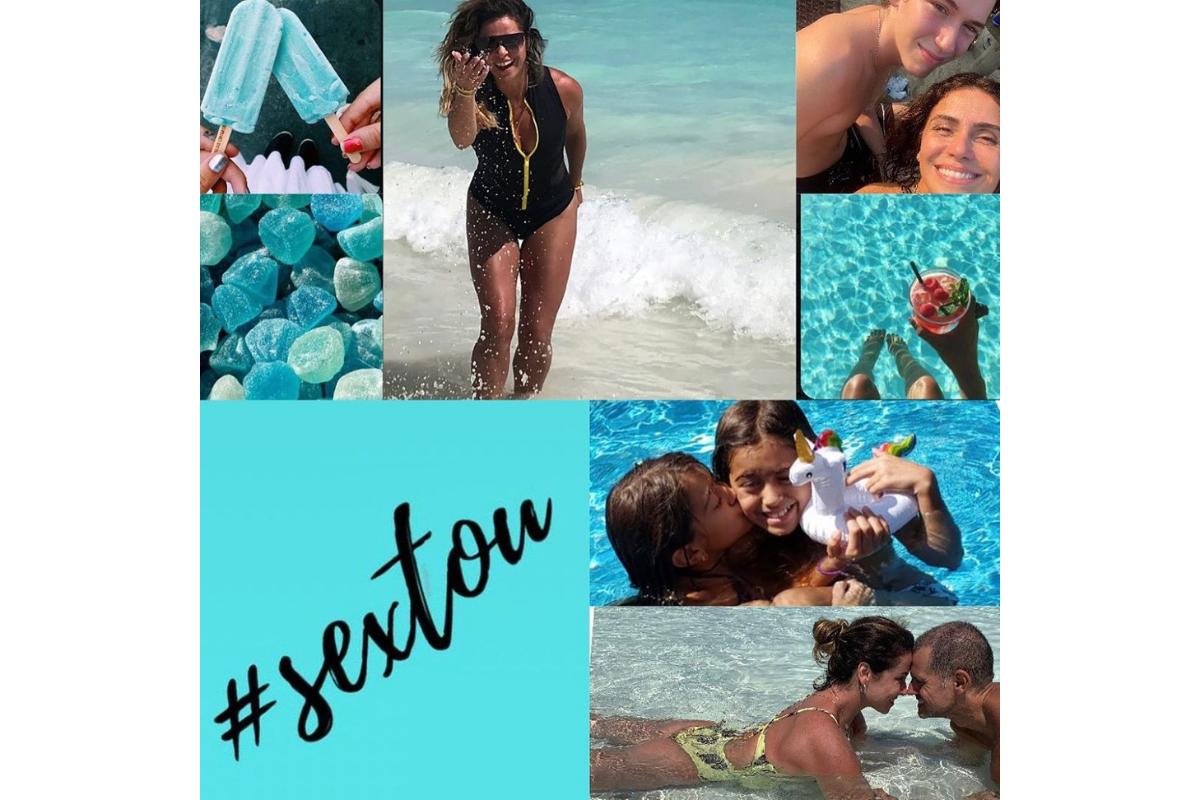 A atriz publicou três montagens que tinham fotos dela, do marido, Leonardo Nogueira, diretor de TV e dos filhos: Pietro de 15 anos, filho dela com Murilo Benácio, e as gêmeas de 10 anos Sofia e Antônia, que são filhas do Leo.