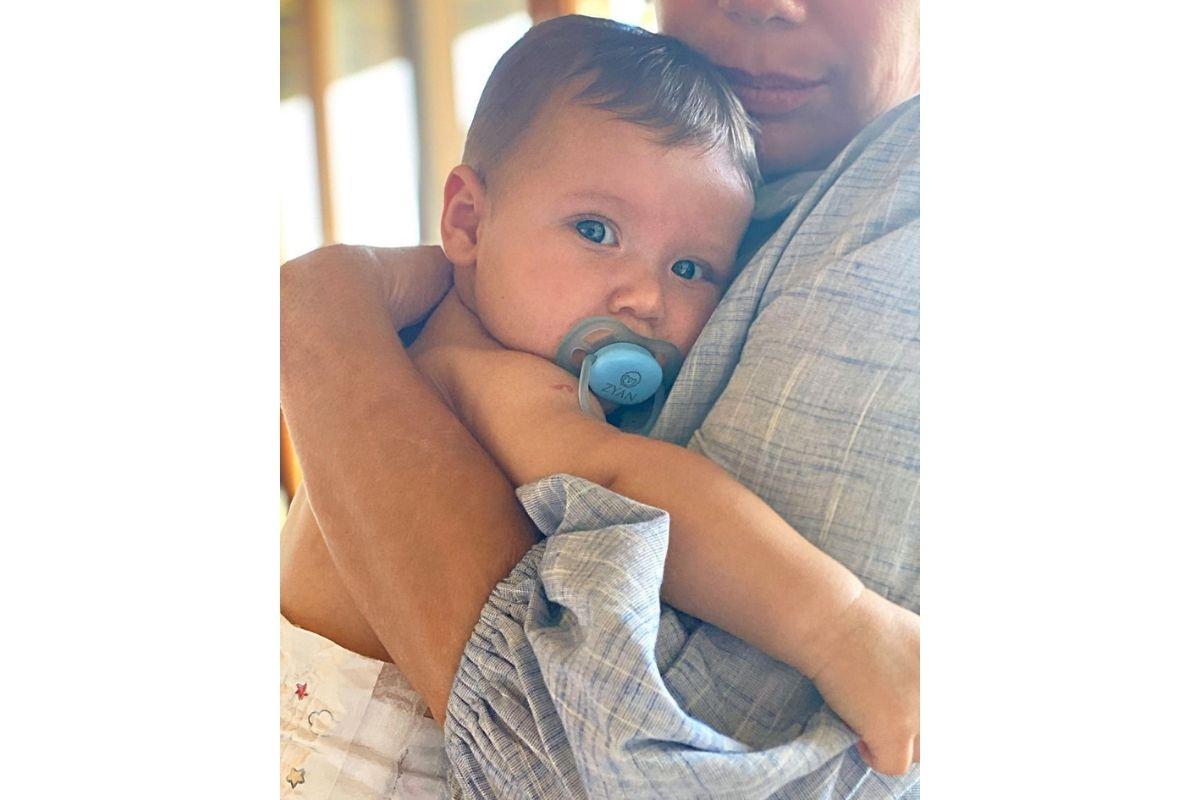 A publicação, compartilhada através do perfil de Gio no Instagram, já teve mais de 150 mil likes e conta com mais de 500 comentários. Na foto, Zyan aparece com uma chupeta na boca olhando para a câmera enquanto aproveita o colo da avó, Debora Ewbank, mãe de apresentadora.
