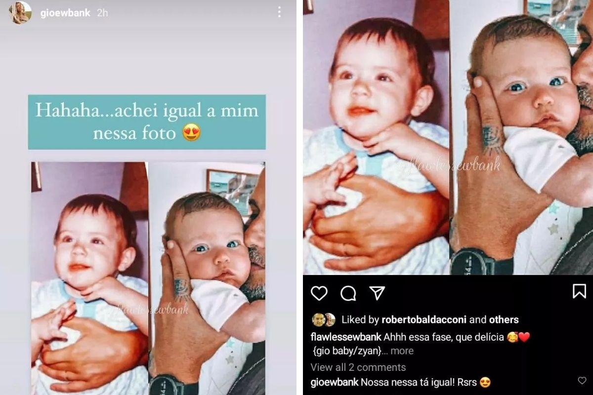 Giovanna compartilhou uma montagem comparando a foto de bebê com o filho para apontar a semelhança. “Hahaha achei igual a mim nessa foto”, afirmou a apresentadora ao repostar a publicação nos Stories. A comparação foi originalmente postada por um fã e Giovanna fez questão de também deixar um comentário afirmando: “Nossa, nessa tá igual!”. Além de Zyan, ela e Bruno Gagliasso também são pais de Titi e Bless, de 7 e 5 anos.