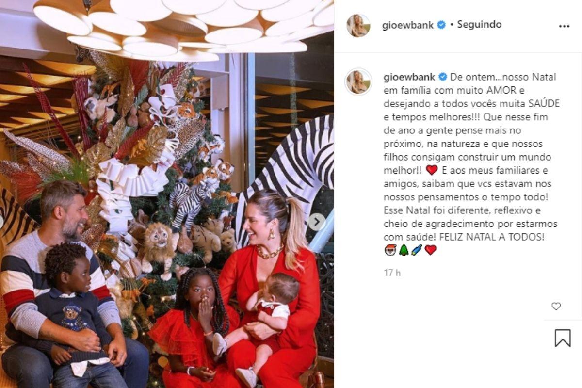 Nas imagens, a família aparece reunida em frente a árvore de Natal, com as crianças se divertindo. A decoração, como explicou Giovanna no início do mês, faz referência ao Malawi, país onde Titi e Bless nasceram.