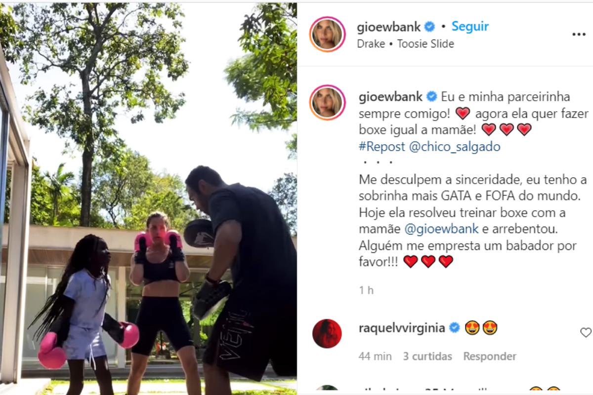 “Eu e minha parceirinha sempre comigo! agora ela quer fazer boxe igual a mamãe! ” , escreveu Giovanna Ewbank.