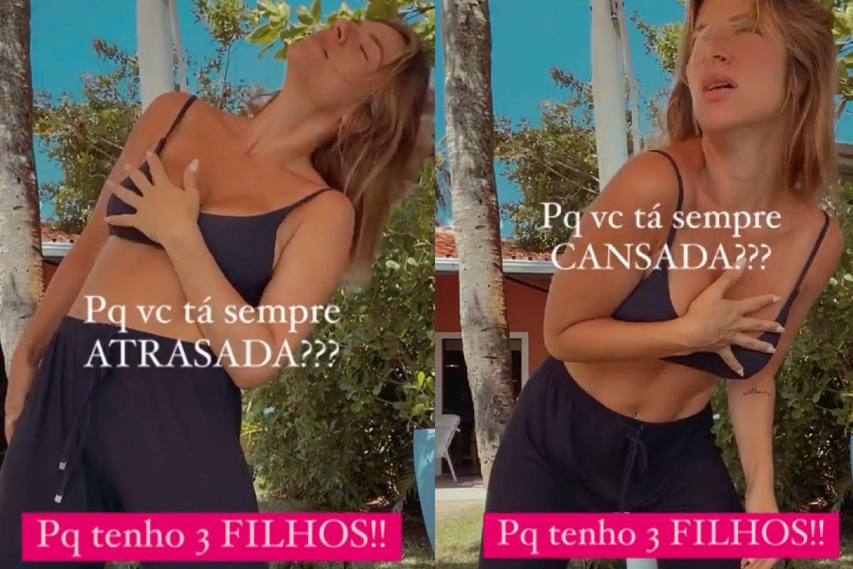 Gio entrou na nova trend do TikTok e divertiu os seguidores ao contar o motivo de estar sempre atrasada e também parecer sempre tão cansada. Na publicação feita no Instagram, a mãe revelou o grande mistério por trás de tudo isso: “tenho 3 filhos”.