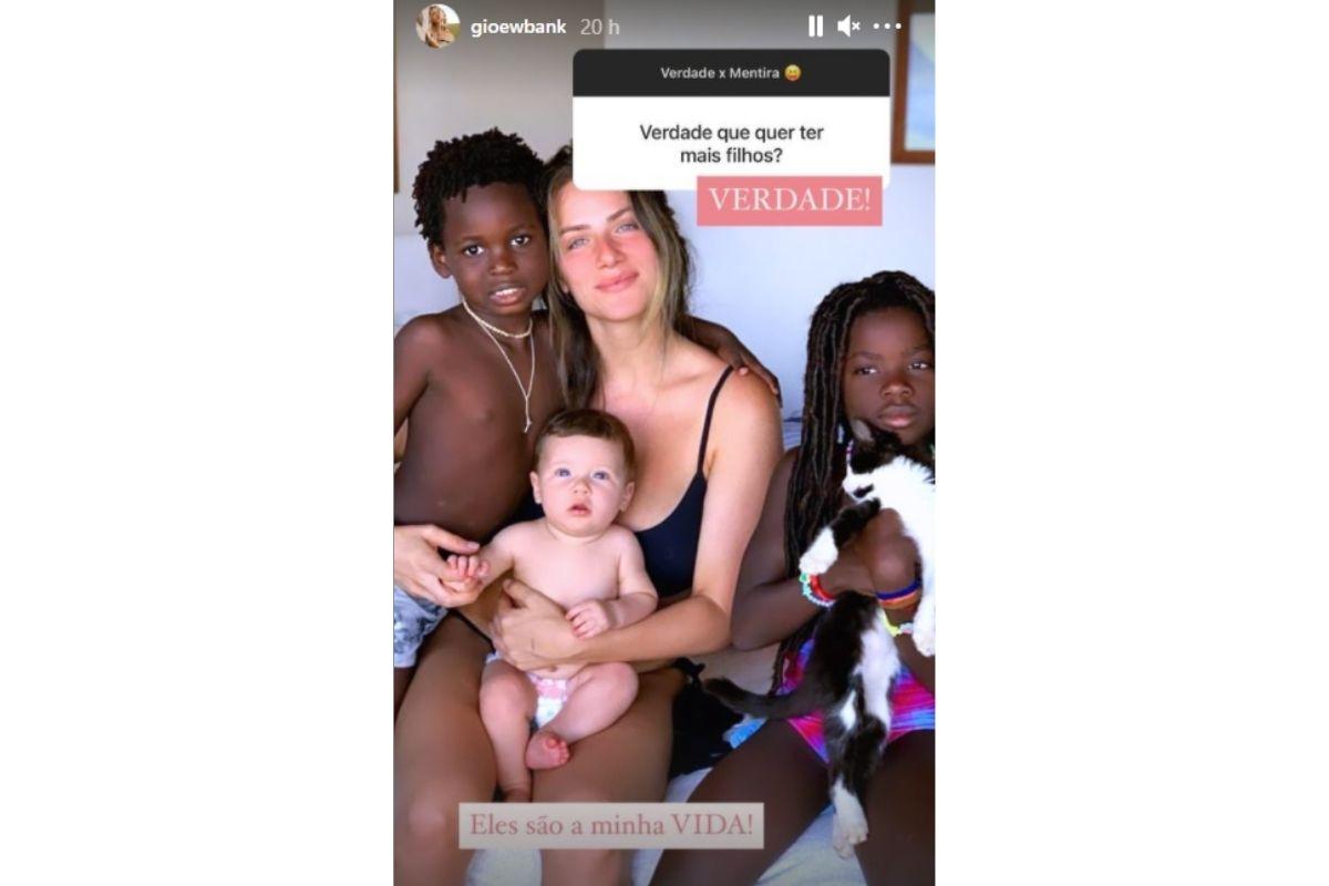 E parece que a família ainda vai aumentar! Giovanna confirmou para uma seguidora que ainda quer ter mais filhos. Com uma foto ao lado de Bless, Titi e Zyan, ela escreveu: “Eles são a minha vida”.