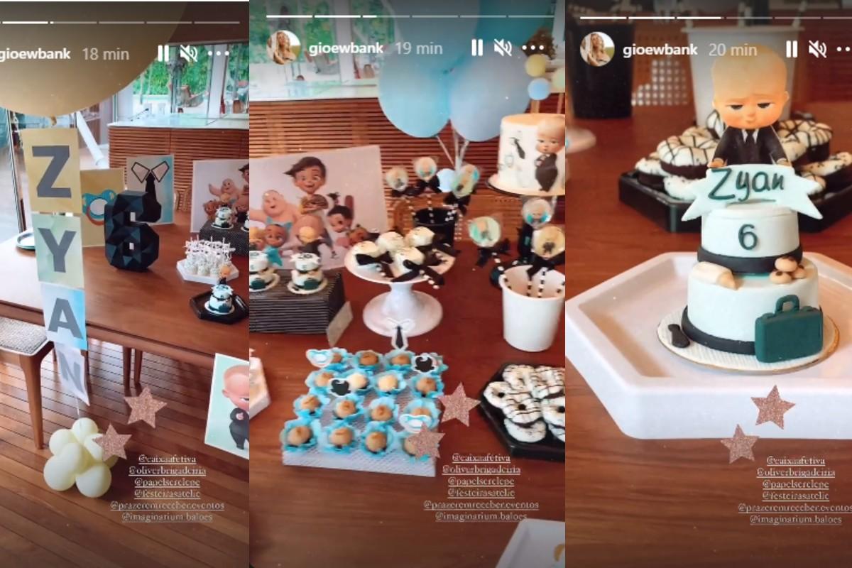 Nesta sexta-feira (08), Zyan completa 6 meses de vida e Giovanna Ewbank não deixou a data passar em branco. Através de vídeos no Instagram ela mostrou detalhes da decoração da festa, que inclui bolo e docinhos também.