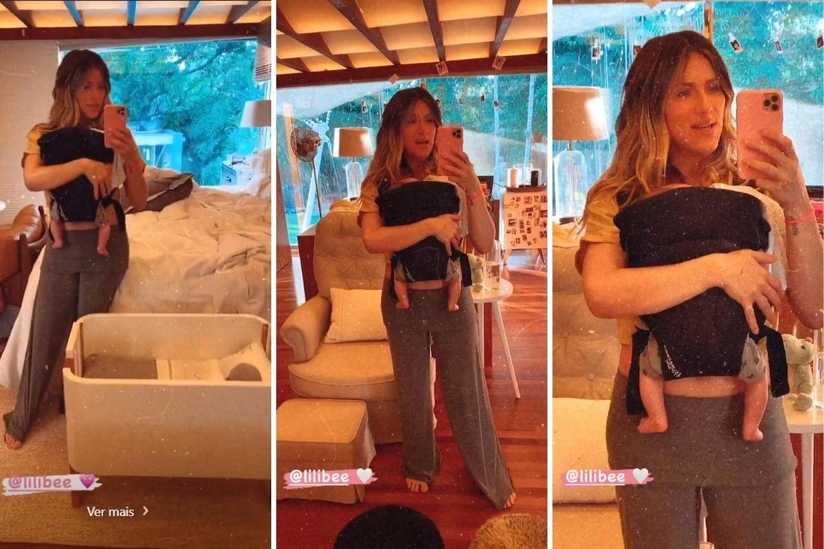 Nesta última quinta-feira, 28 de agosto, a apresentadora Giovanna Ewbank mostrou um pouco do cotidiano com o bebê Zyan, um mês. Ela apareceu com o caçula, fruto do relacionamento com o ator Bruno Gagliasso, no canguru no ‘agarrado’ no colo da mãe.