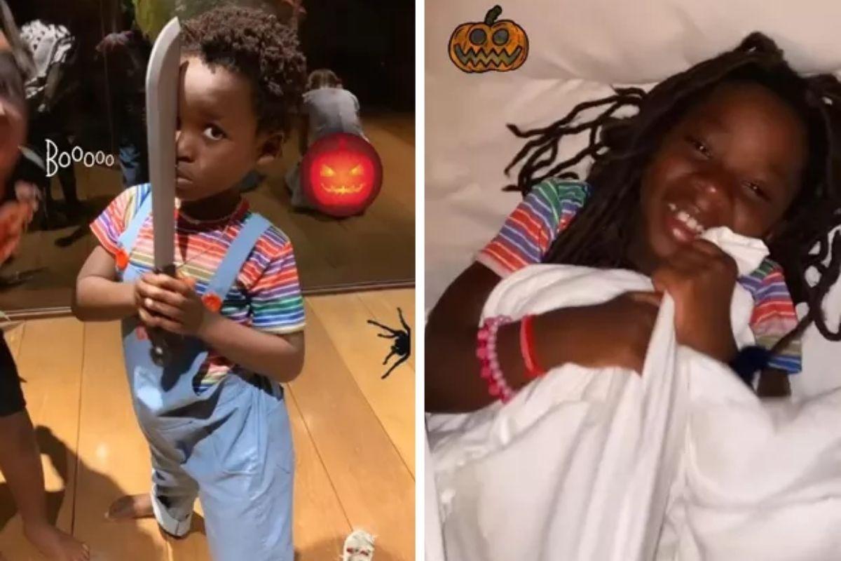 Festa em família! Neste domingo, 25 de outubro, Giovanna Ewbank mostrou a festa de Halloween que fez para os filhos. Nas imagens, Titi e Bless aparecem fantasiados de Chucky, personagem do filme ‘Boneco assassino’. Além das duas crianças, ela também é mãe de Zyan, todos frutos do relacionamento com Bruno Gagliasso.