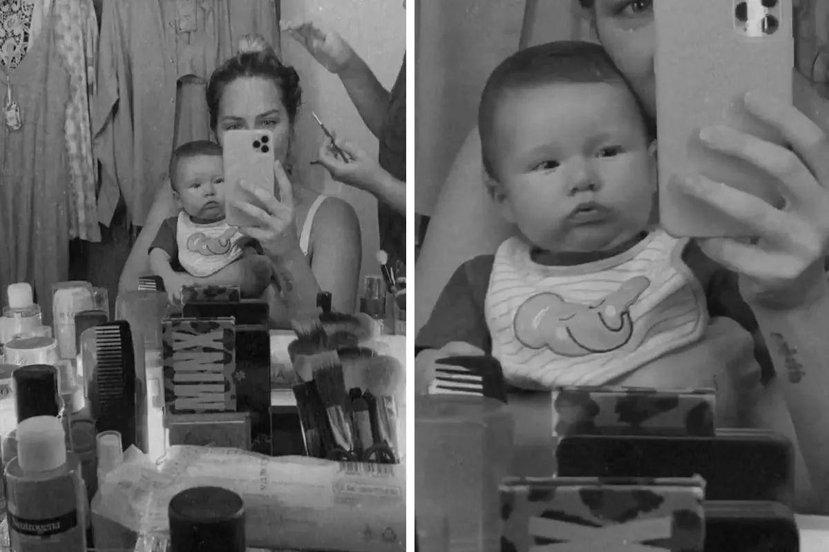 Nas imagens, a apresentadora aparece sendo maquiada, com o bebê em no colo e ele encara o próprio reflexo no espelho. “Elefantinho, elefantinho… ele quer se ver, não creio! Não creio no meu bebê elefante”, disse Giovanna, se derretendo pelo filho e contando o apelido carinhoso do filho.