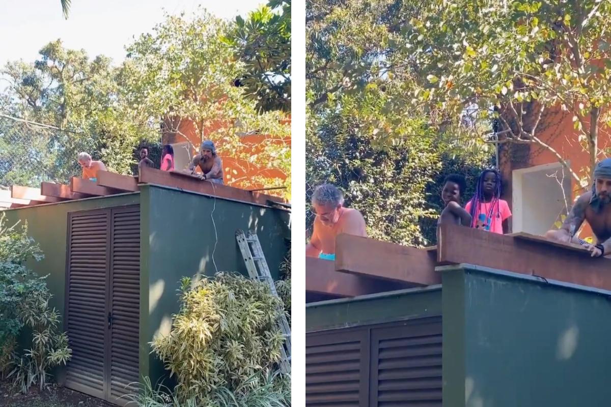 Pai e filhos estão construíndo uma casa na árvore! (Foto: Reprodução / Instagram @gioewbank)