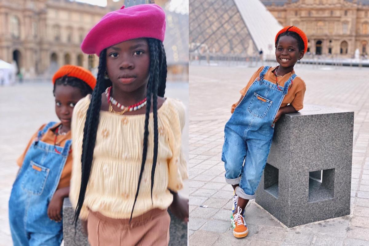 A família viajou para Paris, na França, e aproveitou para tirar muitas fotos durante um passeio no Museu do Louvre.