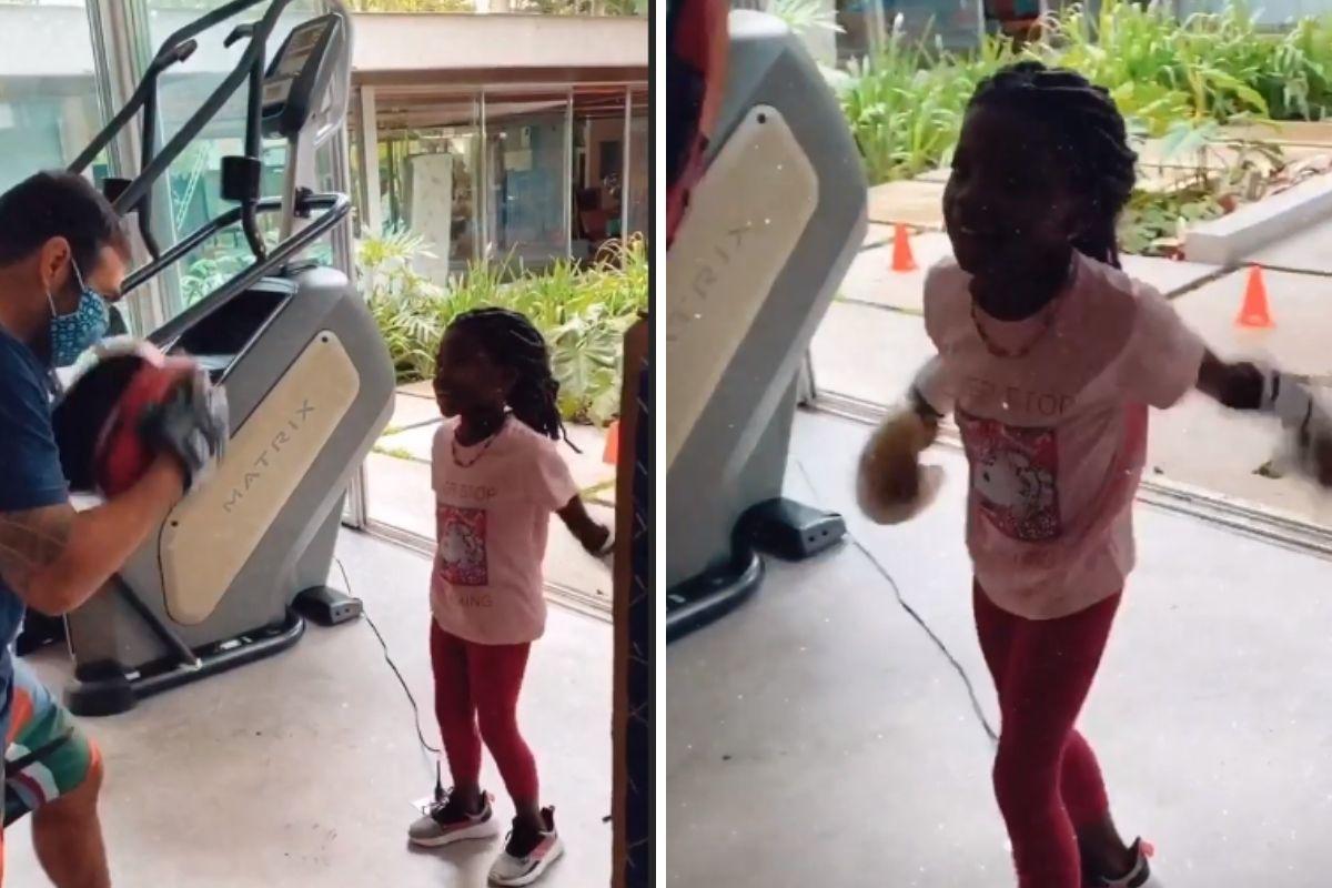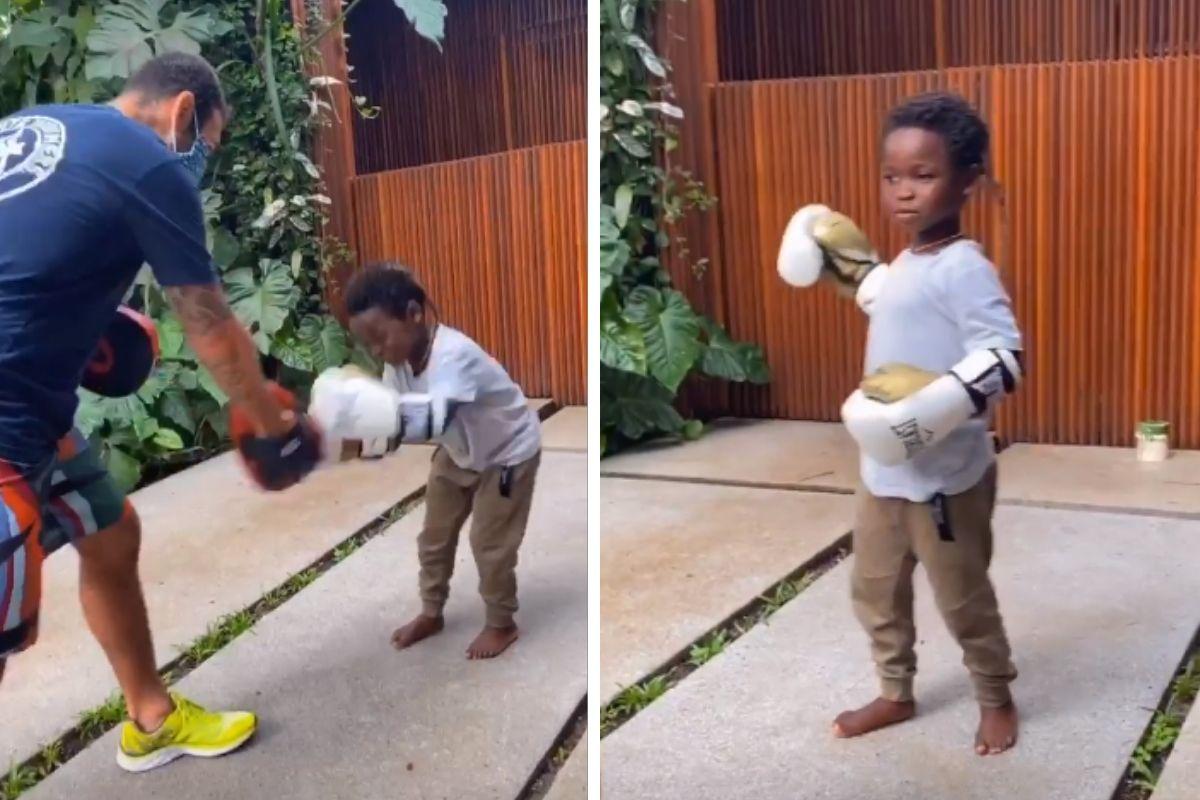 Giovanna Ewbank também compartilhou recentemente com os seguidores outro momento divertido com os filhos, a aula de boxe. Nos stories do Instagram, a esposa de Bruno Gagliasso filmou Bless e a irmã praticando a luta com ajuda de um instrutor. Durante a aula as crianças soltaram várias risadas, assim como a mãe, que incentivou os dois. “Vai, garota”, Giovanna grita para Titi.